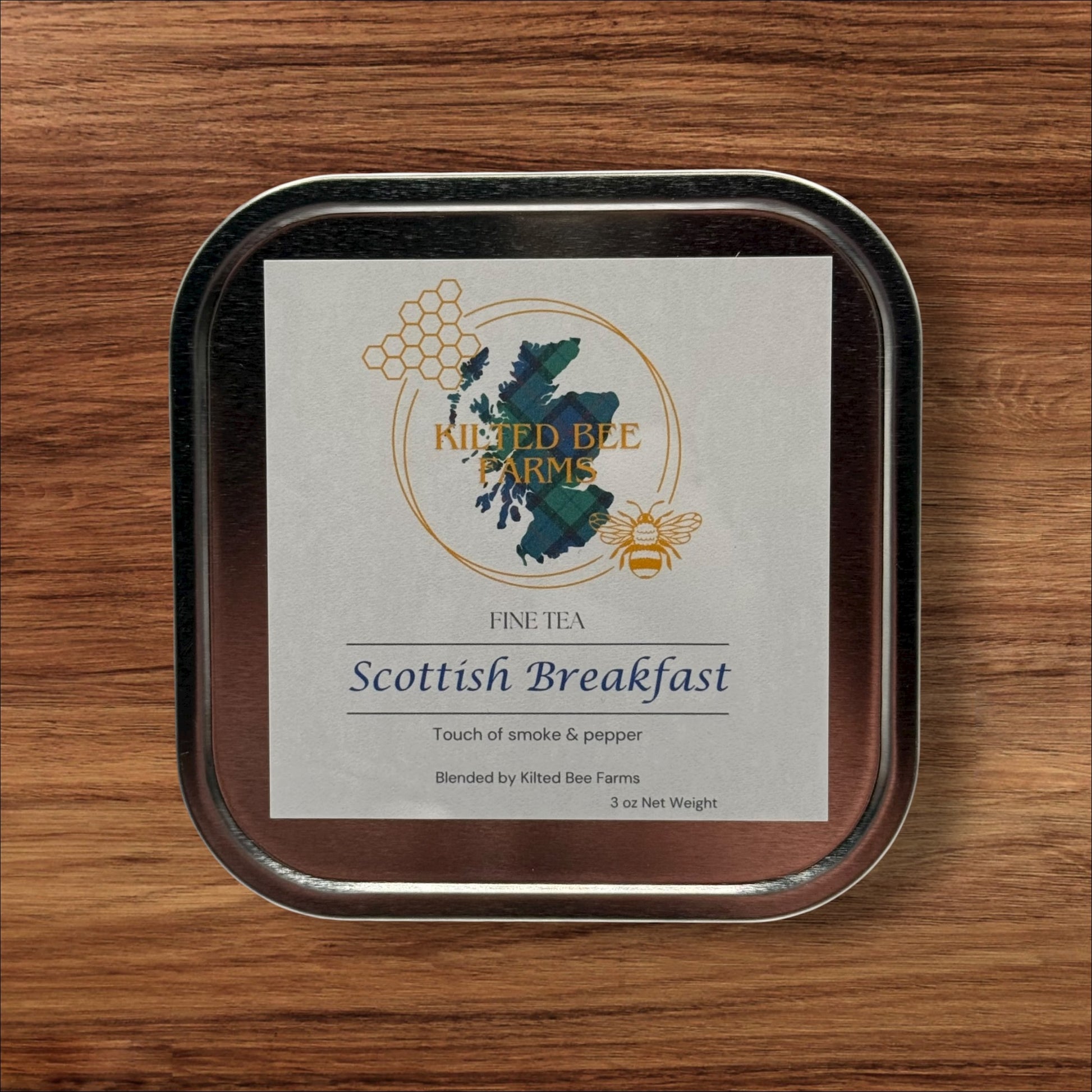Start your day with a tea that’s bold, balanced, and beautifully Scottish. Order your 3 oz tin of Kilted Bee Farms Scottish Breakfast Tea today and bring a taste of the Highlands to your morning table.